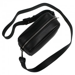 Torebka na ramię w kształcie kuferka, z czarnej skóry naturalnej