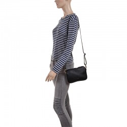 Torebka Sara wykonana w całości ze skóry w kolorze czarnym. Posiada długi, regulowany pasek do noszenia jej na ramieniu. Wewnątrz jedna komora i kieszonka zapinana na ekspres. Cała torebka zapinana jest na zamek błyskawiczny. Wszystkie elementy metalowe w kolorze srebrnym.