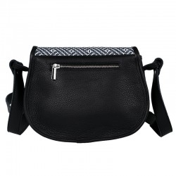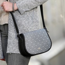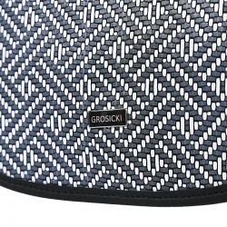 Torebkę Colette uszyliśmy z czarnej skóry naturalnej wysokiej jakości. Zamykaną na magnes klapkę zdobi ciekawy wzór biało-szarej plecionki. Torebka nie mieści formatu A4, ale z pewnością pomieści twoje drobiazgi niezbędne podczas spaceru czy zakupów.