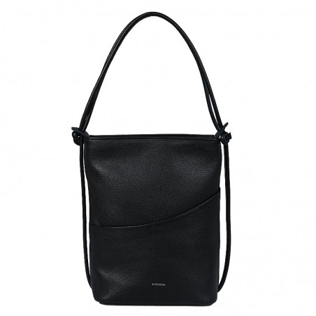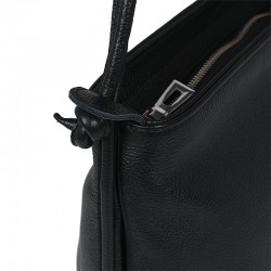 Torebka Rita, to torebka a zarazem plecak. Wykonana ze skóry w kolorze czarnym. Wewnątrz posiada jedną komorę przedzieloną przegrodą, która jednocześnie jest kieszenią zapinaną na ekspres. Dodatkowo wewnątrz znajdują się dwie kieszenie, również zapinane na ekspresy + kieszonka na telefon. Cała torebka zapinana jest zamkiem błyskawicznym. Na froncie torebki dwie kieszonki na drobiazgi. Wszystkie elementy metalowe w kolorze srebrnym.