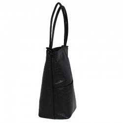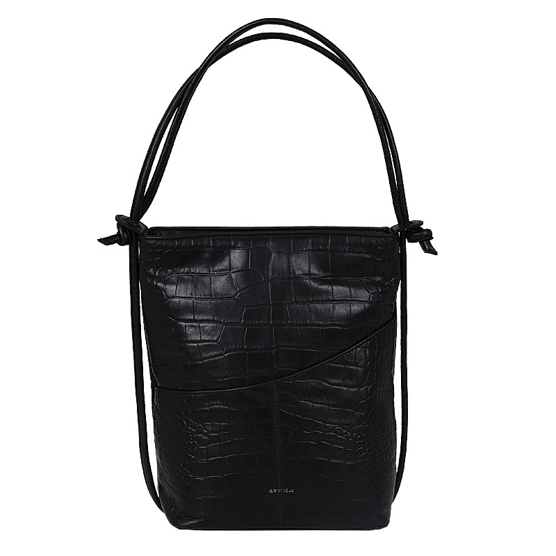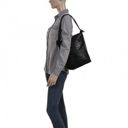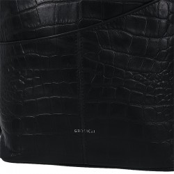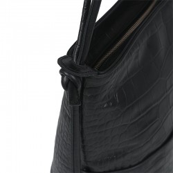 Torebka Rita, to torebka a zarazem plecak. Wykonana ze skóry w kolorze czarnym z tłoczeniem croco. Wewnątrz posiada jedną komorę przedzieloną przegrodą, która jednocześnie jest kieszenią zapinaną na ekspres. Dodatkowo wewnątrz znajdują się dwie kieszenie, również zapinane na ekspresy + kieszonka na telefon. Cała torebka zapinana jest zamkiem błyskawicznym. Na froncie torebki dwie kieszonki na drobiazgi. Wszystkie elementy metalowe w kolorze srebrnym.