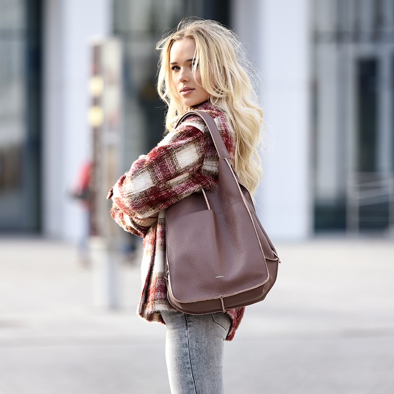 Ponadczasowy styl i maksymalna funkcjonalność - tak w skrócie możemy podsumować model Hella. To torebka hobo ze skóry naturalnej, a zarazem shopperka, która okaże się świetną towarzyszką do eksploracji miejskiej dżungli, spacerów po promenadzie, a nawet spotkań biznesowych. Co więcej, to również model typu kameleon, który - w zależności od Twojej stylizacji - może zmieniać swój wygląd - wystarczy, że rozłożysz jej boki na zewnątrz lub skierujesz do wewnątrz.