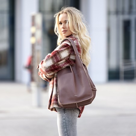 Nasza skórzana torebka hobo wyróżnia się także subtelną elegancją, a wszystko to za sprawą jej groszkowanej faktury. Warto zwrócić uwagę na wyjątkową konstrukcję modelu - jego serce stanowi pojemna komora z kieszonką zapinaną na zamek błyskawiczny, z zewnątrz posiada on natomiast dużą kieszeń na drobiazgi. Dwa uchwyty dają możliwość noszenia jej na ramieniu, jak i w dłoni. Co więcej, w pakiecie z Hellą otrzymujesz utrzymaną w tej samej stylistyce, praktyczną kosmetyczkę, która umili Ci wiele wakacyjnych wyjazdów.